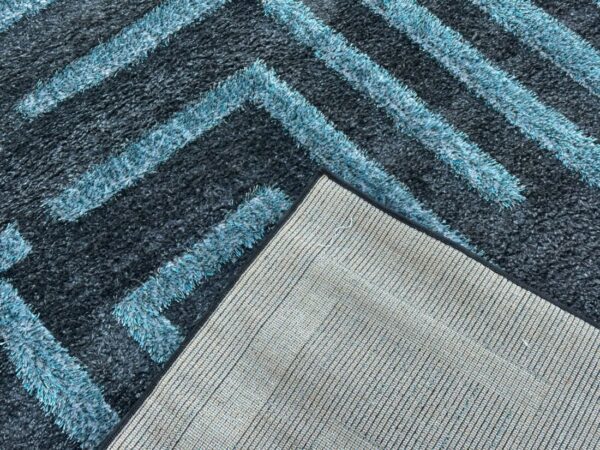 Το Χαλί Shaggy Maze 160×230 φέρνει μοντέρνα ενέργεια και πολυτέλεια στον χώρο σας. Με παχύ, αφράτο πέλος που προσφέρει μοναδική αίσθηση άνεσης και ένα εντυπωσιακό γεωμετρικό σχέδιο σε μπλε και γκρι αποχρώσεις, αποτελεί την ιδανική επιλογή για σαλόνι ή υπνοδωμάτιο.